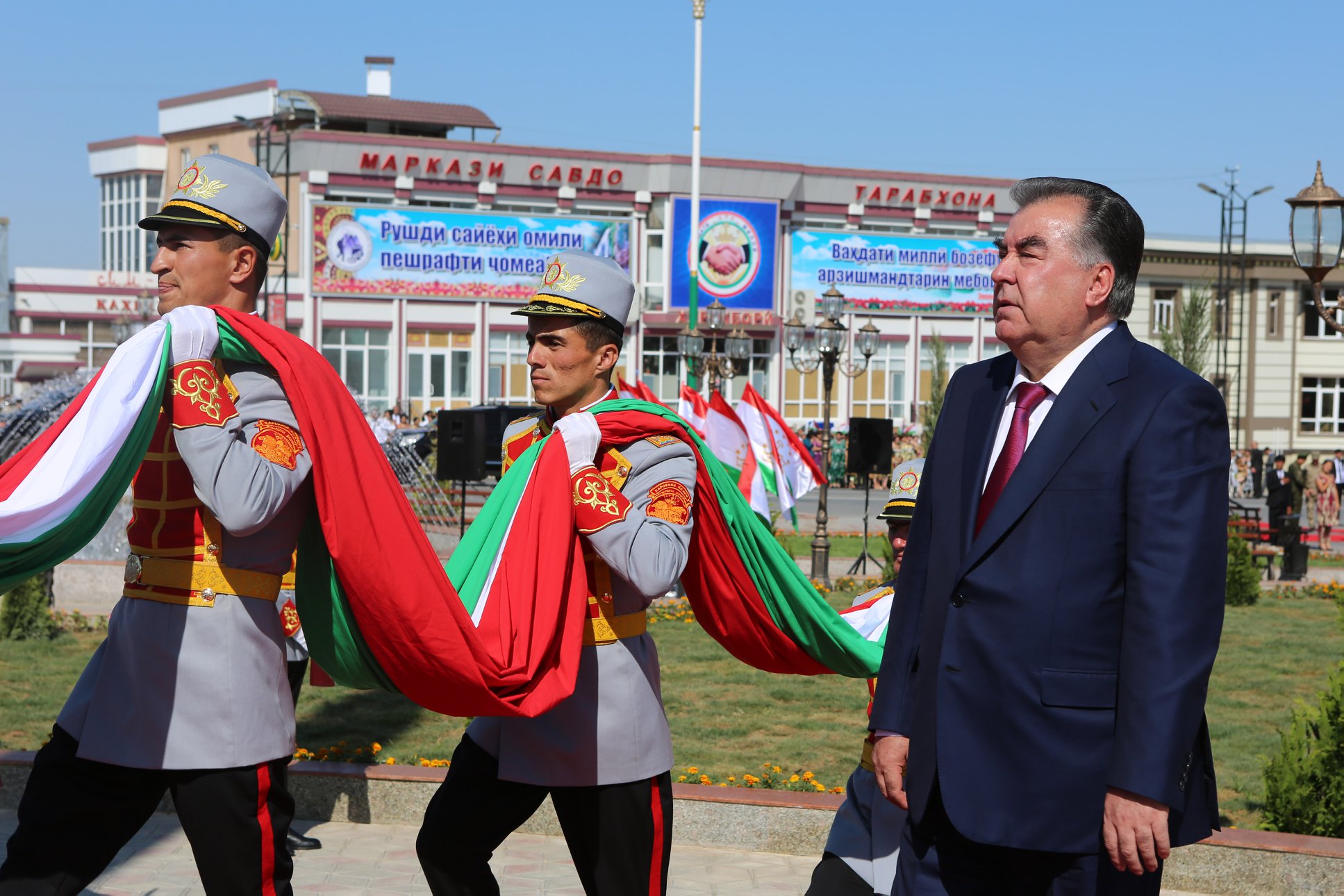 Накануне, 27 июня, Президент Республики Таджикистан Эмомали Рахмон в Канибадама открыл постамент Государственного флага.