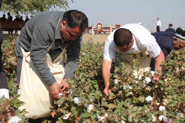 Помимо этого, в торжественной обстановке был дан старт машинной уборке хлопка. В этом хозяйстве начали работу два комбайна, которые за одну смену соберут более 7,5 тонн «белого золота».