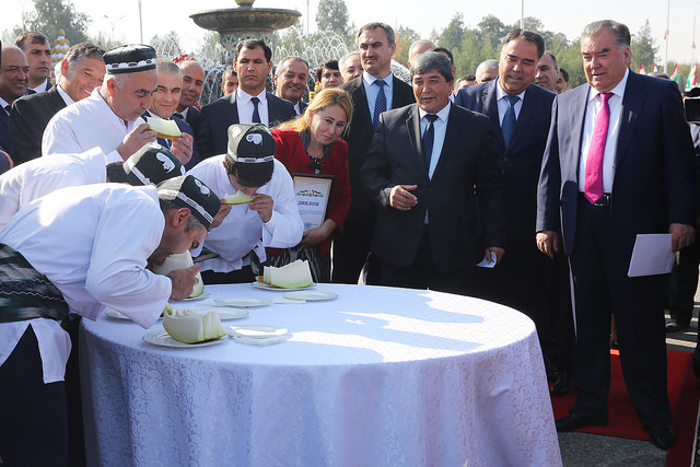 В рамках этого величественного мероприятия были проведены конкурс и соревнование с занимательными условиями. В том числе очень интересным был конкурс по быстрому поеданию дыни среди молодежи.