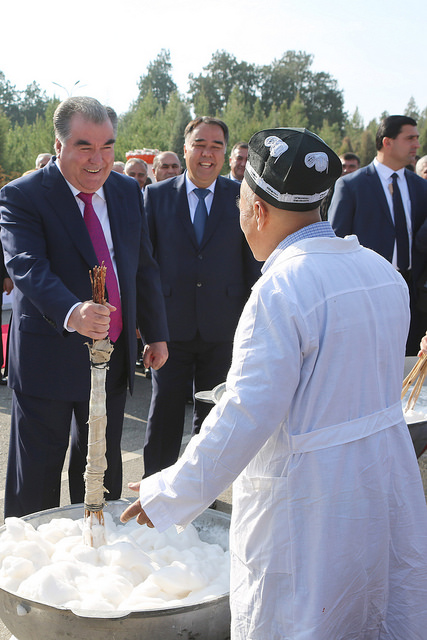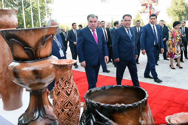 На четвертый день своей рабочей поездки по городам и районам Согдийской области Эмомали Рахмон ознакомился с выставкой народных ремёсел во Дворце «Арбоб» и принял участие в торжествах Фестиваля «Оши палав», «Иди асалу харбуза» и «Ширинихои милли».