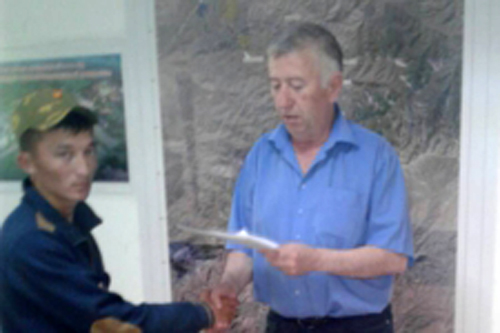 Шохрух Эркабоев — солдат, уволенный в запас, получил приказ о приёме на работу в администрацию ООО «Горно-металлургическая компания Таджикистан-Китай».