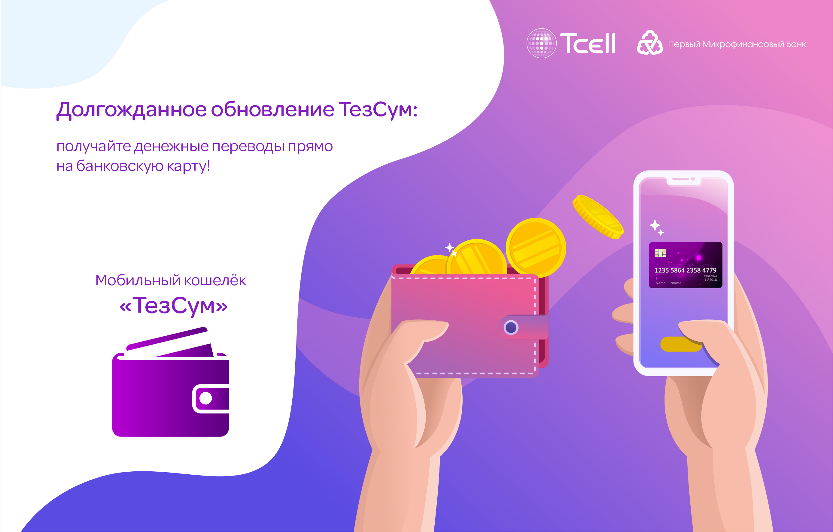 Мобильный кошелек ТезСум, разработанный компанией Tcell совместно с Первым Микрофинансовым Банком, представляет новую и уникальную функцию: теперь пользователи кошелька могут получать денежные переводы из любой точки мира прямо на свою банковскую карту НПС «Корти Милли», выпущенные Первым Микрофинансовым Банком!