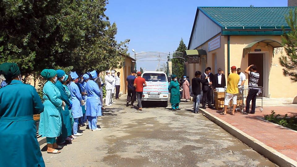 «150 штук защитных костюмов, 10 функциональных коек, 9 лазерных пульсометров, 15 упаковок АМБУ (механическое ручное устройство для выполнения временной искусственной вентиляции лёгких), 5 кардиомониторов, 2 кардиомонитора-дефибриллятора, 20 ручных пульсоксиметров, 100 штук многоразовых масок и 500 штук одноразовых масок были переданы руководству города для оснащения больниц и лечения пациентов с пневмонией и коронавирусом», — отметила Парвина Абдуллоева.
