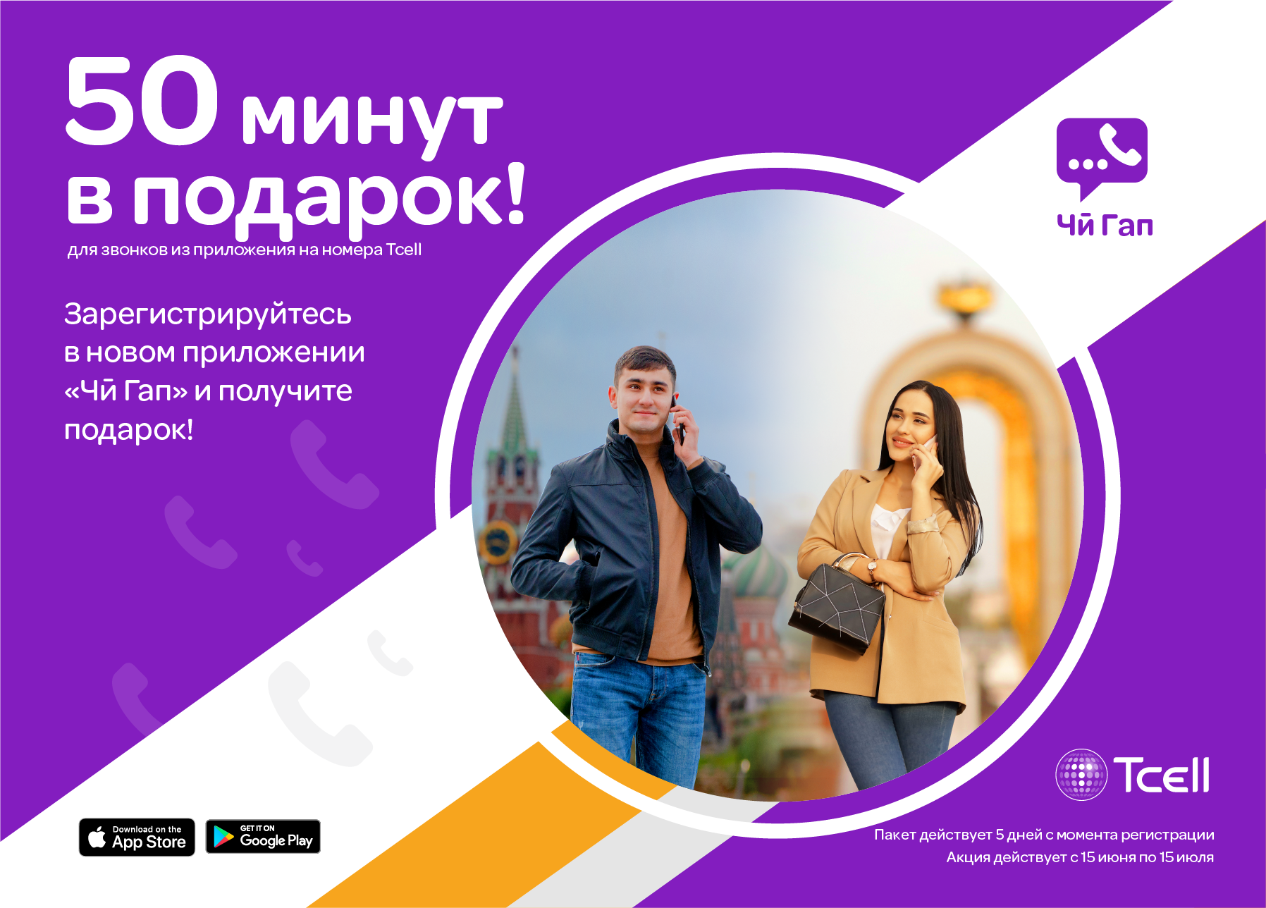 Все, что нужно сделать – скачать и установить новое приложение «Чи Гап» через Play Market (https://is.gd/ChiGap) или App Store (https://is.gd/ChiGapApp). Подарочный пакет минут для звонков на номера Tcell будет действовать 5 дней с момента регистрации в новом приложении.