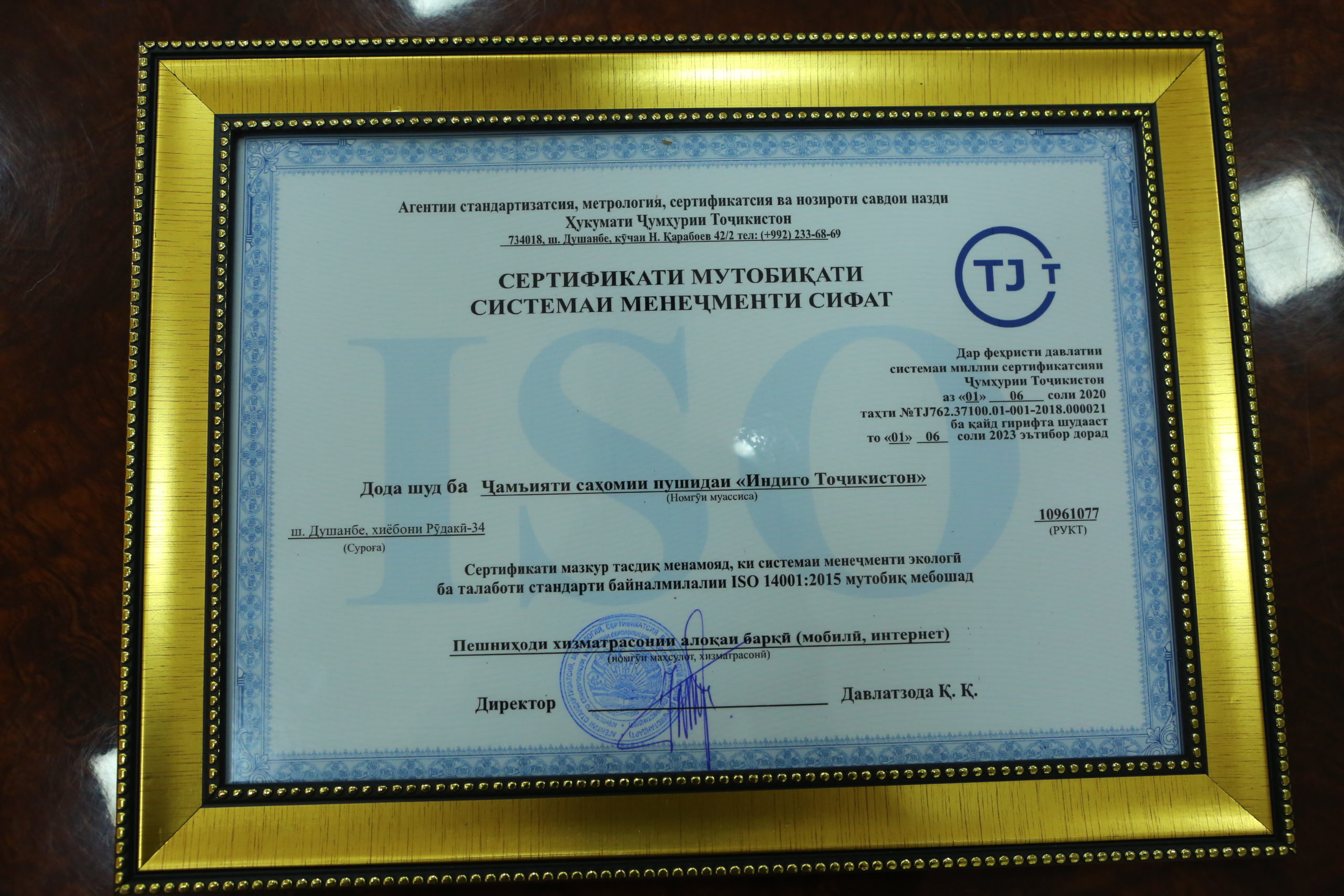 На церемонии вручения Заместитель директора Агентства «Таджикстандарт» Шерзода Ситора Джалол сообщила о том, компания Tcell – первая и пока единственная компания в республике, которая сразу получила 3 сертификата стандарта качества, одним из которых является Сертификат соответствия системе экологического менеджмента ISO 14001-2015 и это является показательным примером для многих компаний. Получение Сертификатов означает, что деятельность компании Tcell осуществляется в соответствии с нормами законодательства РТ и международными стандартами в области энергосбережения и улучшения экологической ситуации. Очень радует, что компания самостоятельно выбрала для себя столь важное и ответственное для общества направление.
