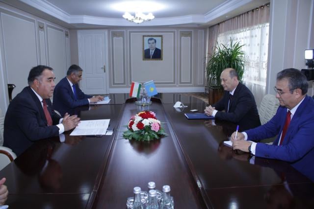 Председатель Согдийской области Раджаббой Ахмадзода провел рабочую встречу с Чрезвычайным и Полномочным послом Республики Казахстан в Таджикистане Аскаром Таджибаевым.