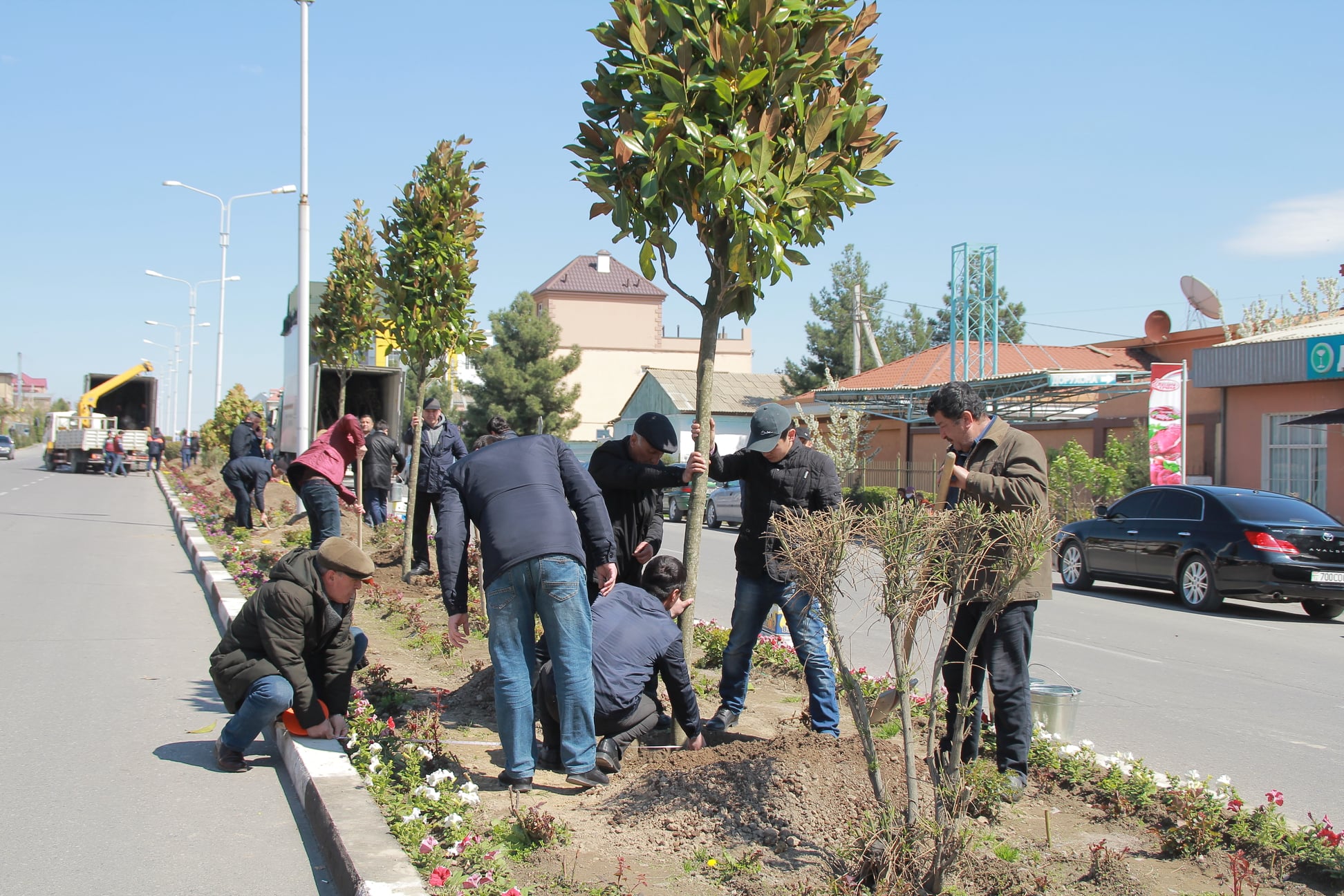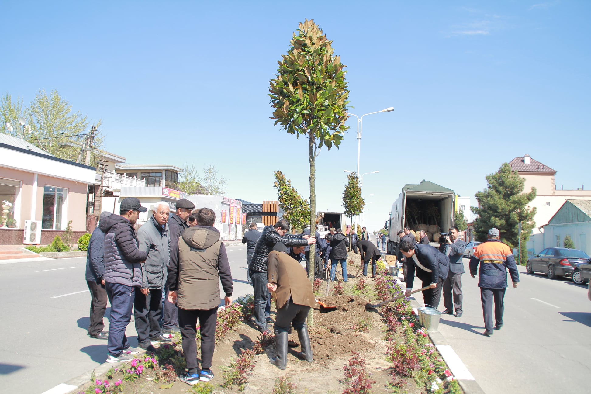 Кампания по посадке магнолий прошла сегодня, 1 апреля 2021 года с участием председателя Согдийской области Раджаббоя Ахмадзода и мэра города Худжанда Фирдавсша Шарифзода. Также к озеленению территории проспекта Рахима Джалила присоединились предприниматели и жители махалли Сирдарё, сообщает пресс-служба председателя города Худжанда.
