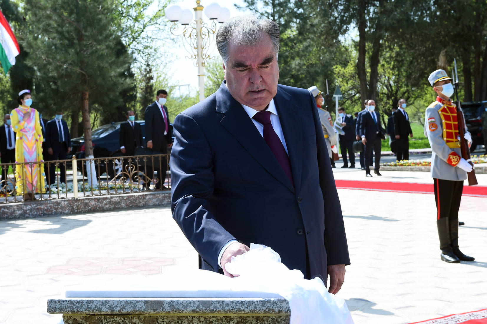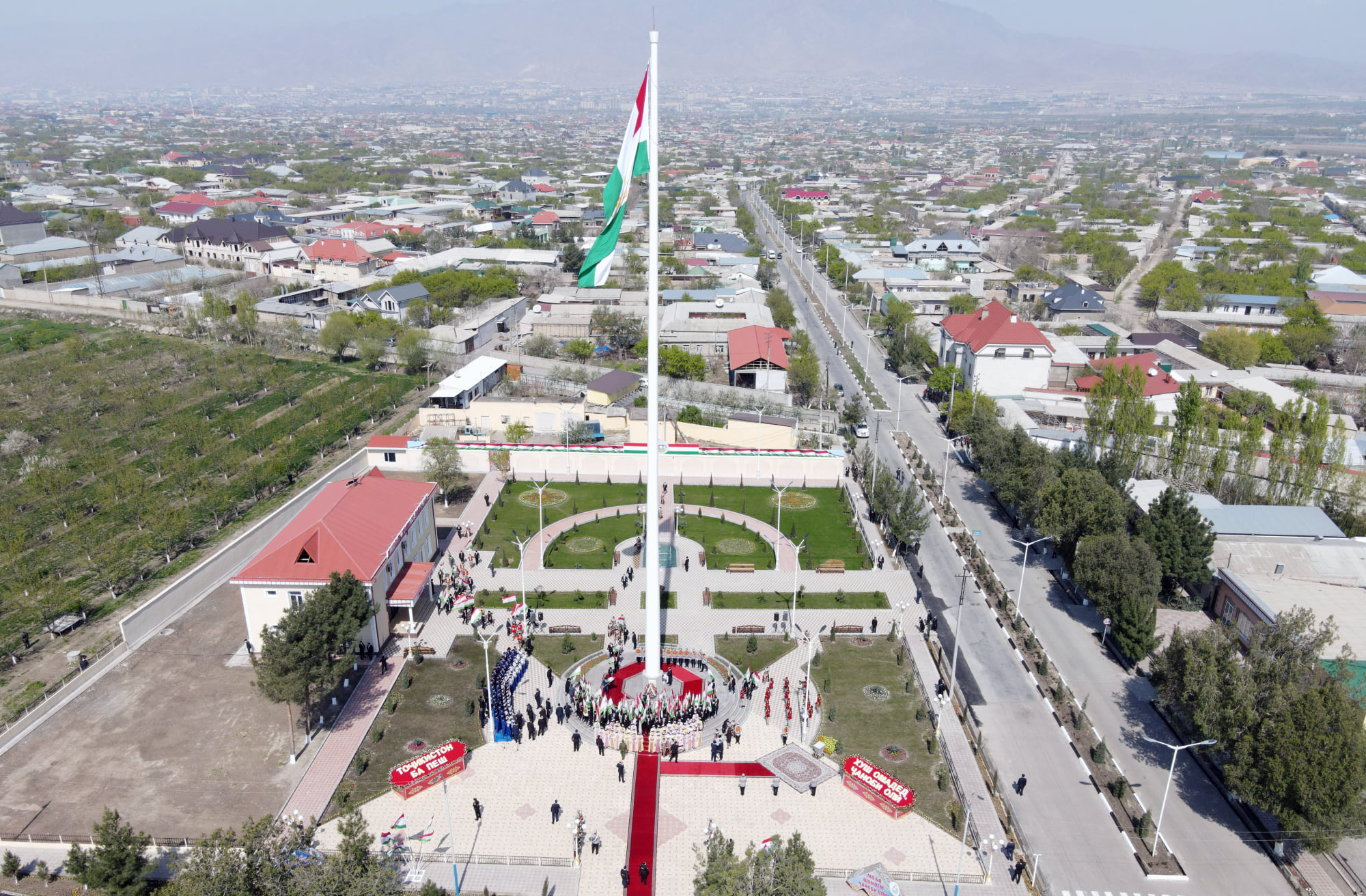 Церемония открытия площади Государственного флага прошла 7 апреля 2021 года при участии президента Республики Таджикистан Эмомали Рахмона
