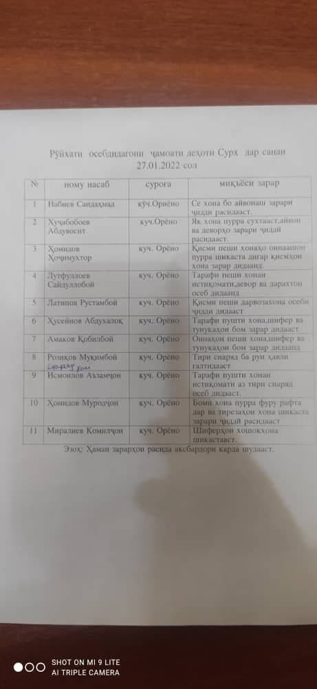Ниже представляем полный список жителей джамоата Сурх города Исфара, которым был нанесен ущерб в результате вооруженного конфликта.
