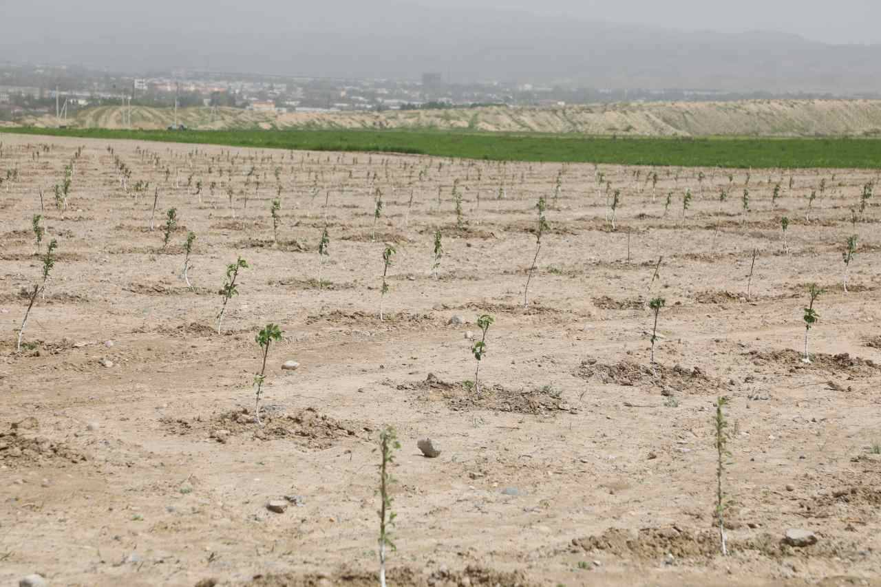 в свете поручений Президента Таджикистана Эмомали Рахмона в области рационального использования земли, в Зафарабдском районе Согдийской области на 140 гектарах бесхозной земли созданы интенсивные сады. На этой территории посажены яблони, сливы и ореховые деревья.
