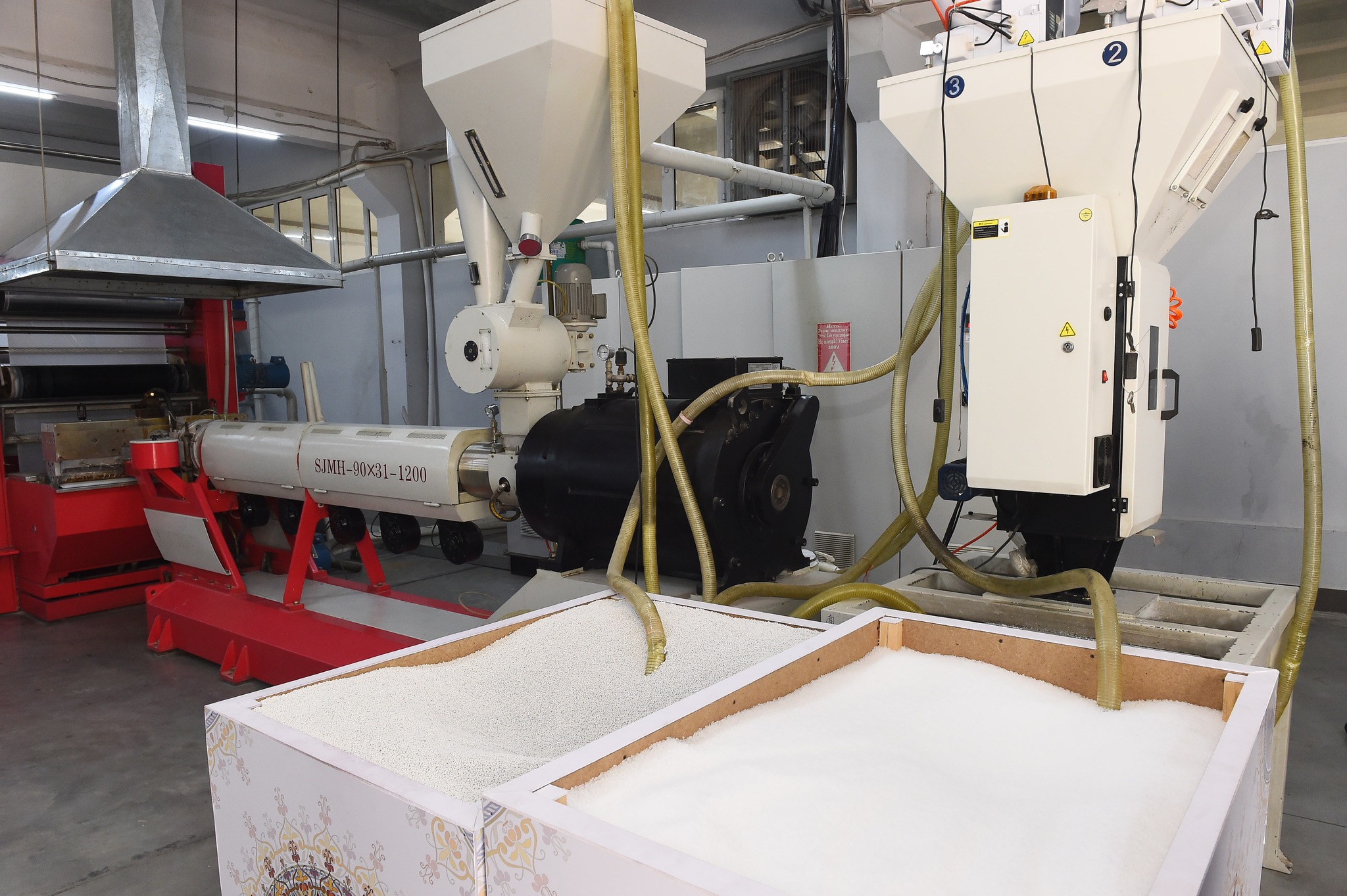 Как было сообщено президенту страны, все оборудование предприятия завезено из Китайской Народной Республики. Выпускаемая продукция соответствует международным стандартам. На предприятии производится от 20000 до 25000 мешков в сутки. Цена мешков зависит от их размера и качества. Предприниматели импортируют сырье из Узбекистана, Российской Федерации, Китайской Народной Республики и Туркменистана.