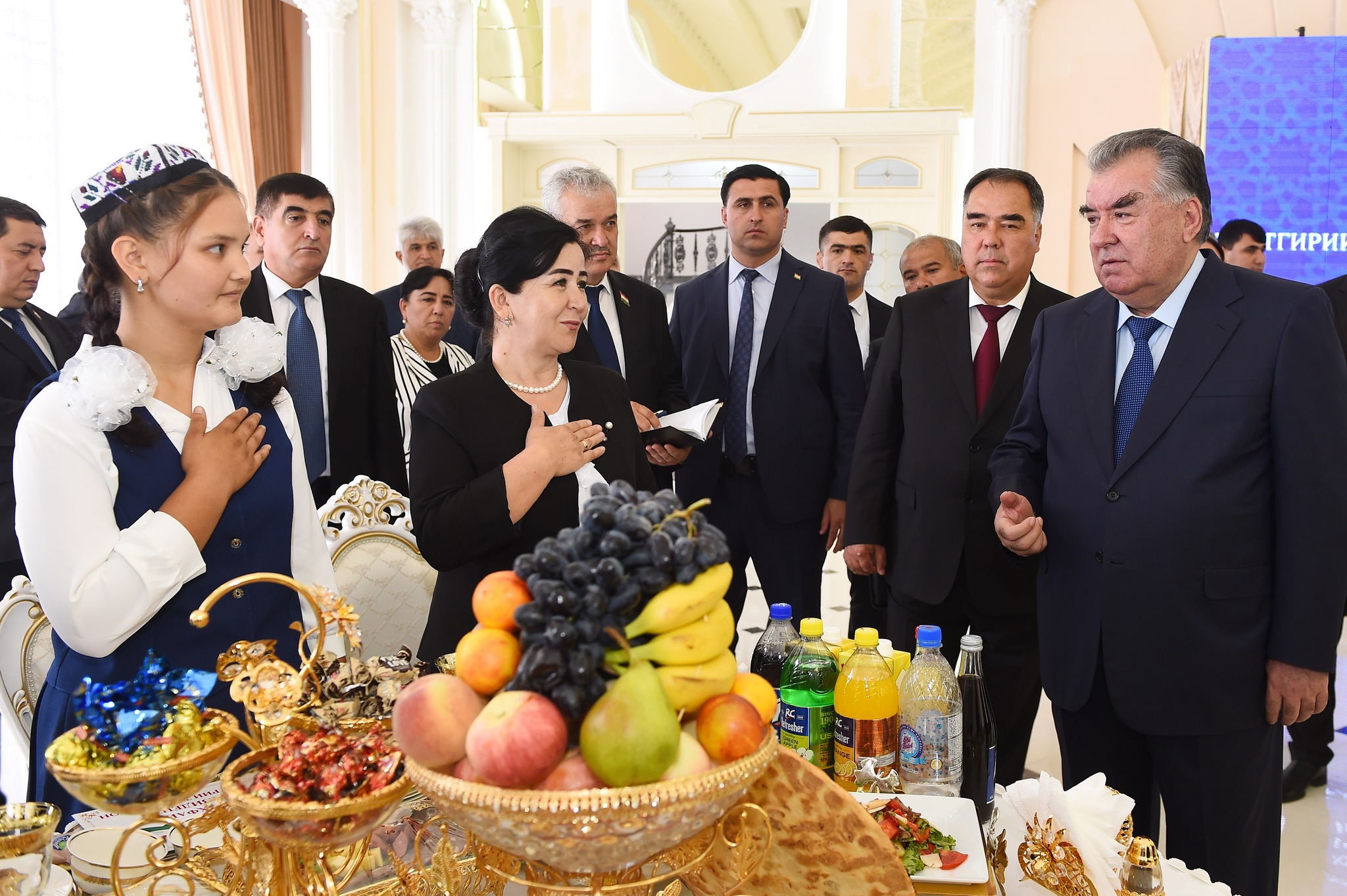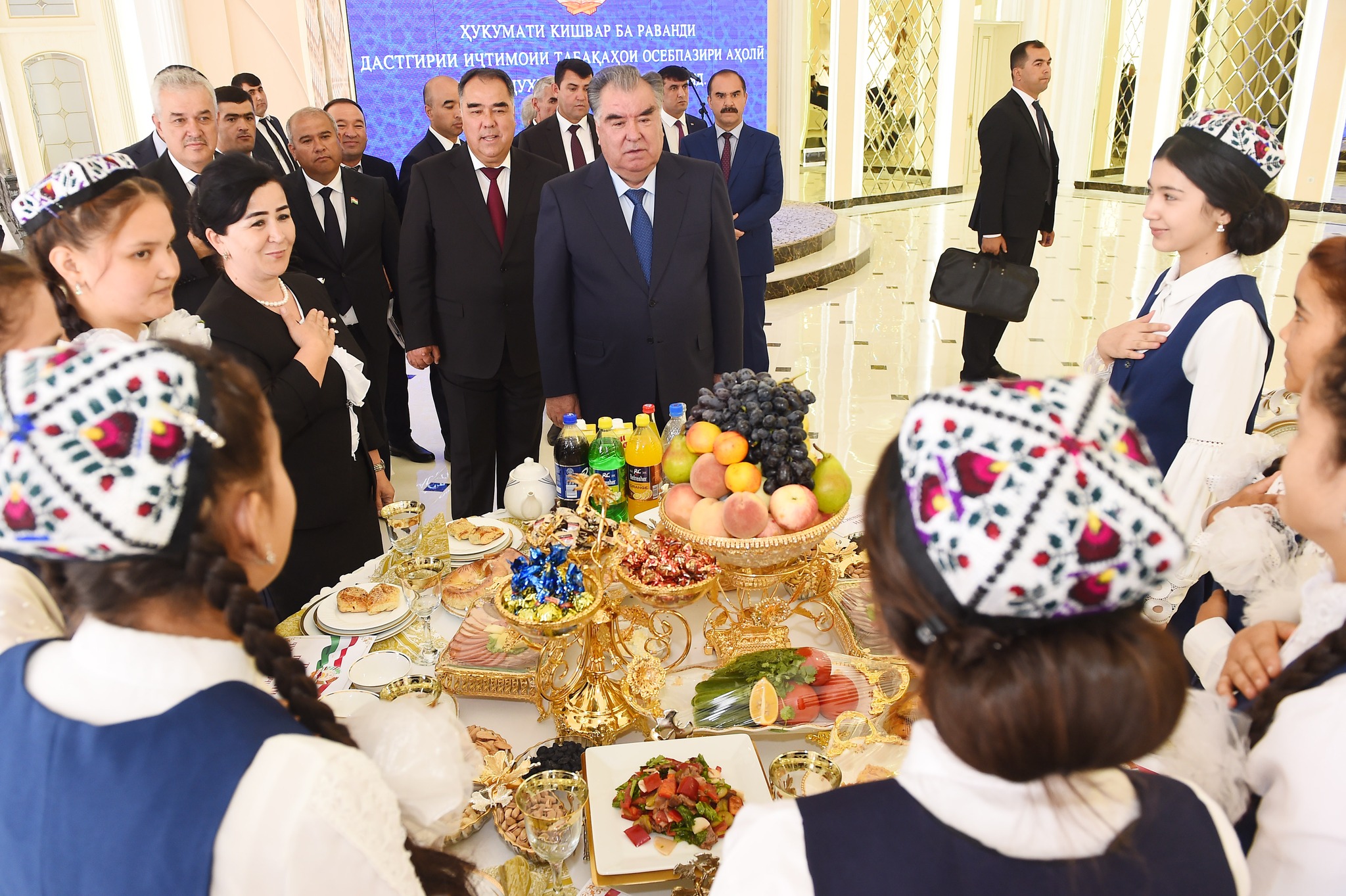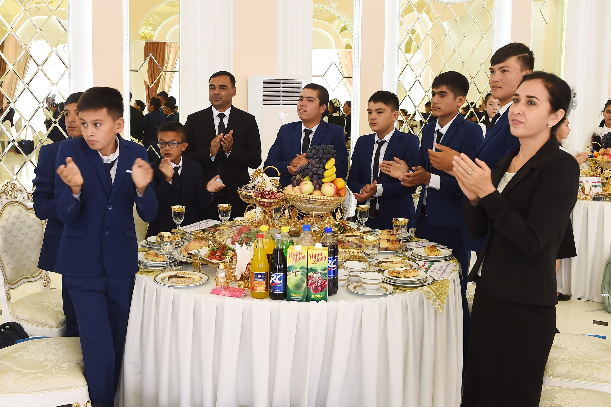 В банкетном зале комплекса глава государства встретился с 100 круглыми сиротами из Канибадама, Джабборрасуловского и Бободжонгафуровского районов. Детям были вручены материальная помощь и подарки.