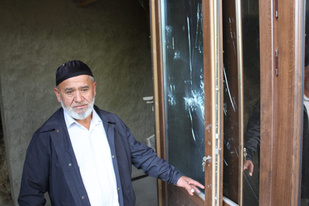 Сафар Ашуров, житель махалли «Гузар» сельского джамоата Чоркух проживает по соседству с мечетью. Он говорит, что утром 16 сентября целью кыргызов было нанесение удара по мечети, но выпущенный снаряд попал в его дом, в результате которого были разбиты все стены, окна и двери его дома.