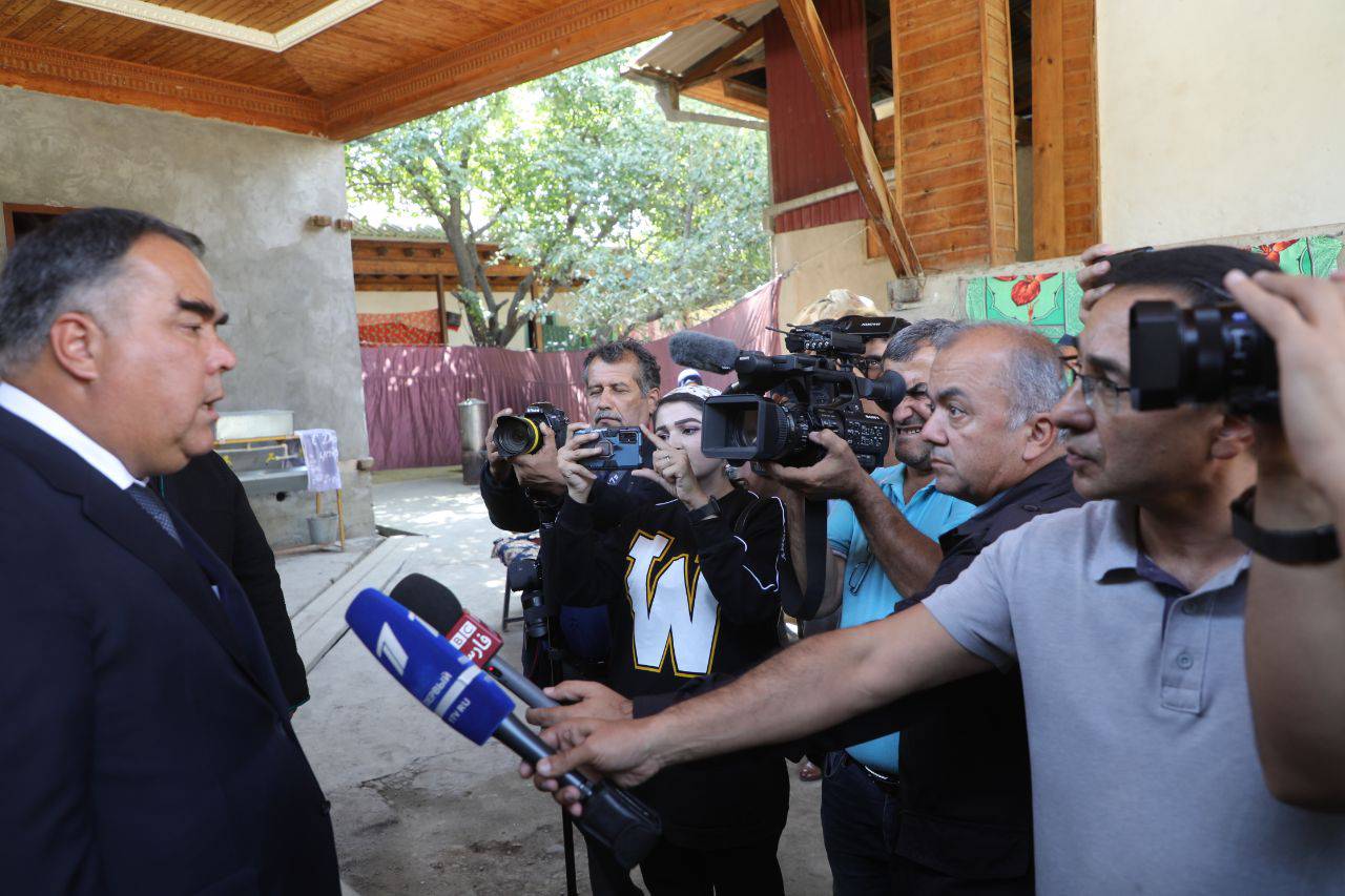 Здесь с группой журналистов встретился председатель Согдийской области Раджаббой Ахмадзода. В ходе беседы глава области проинформировал журналистов о ситуации в приграничных участках, последствиях вооруженного нападения со стороны Кыргызстана, нанесенном ущербе, поддержке пострадавшего населения со стороны Правительства Республики Таджикистан, особенно Президента страны, Лидера нации уважаемого Эмомали Рахмона.