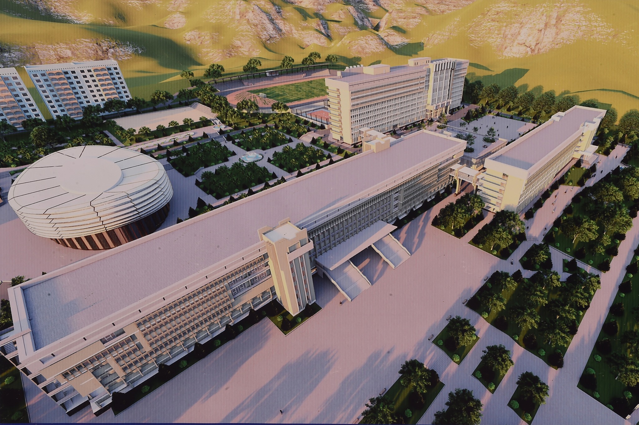 Проект строительства многоэтажного жилого дома и проект размещения учебного корпуса, актового зала и вспомогательных зданий на территории Худжандского государственного университета имени академика Бободжона Гафурова презентован президенту страны.
