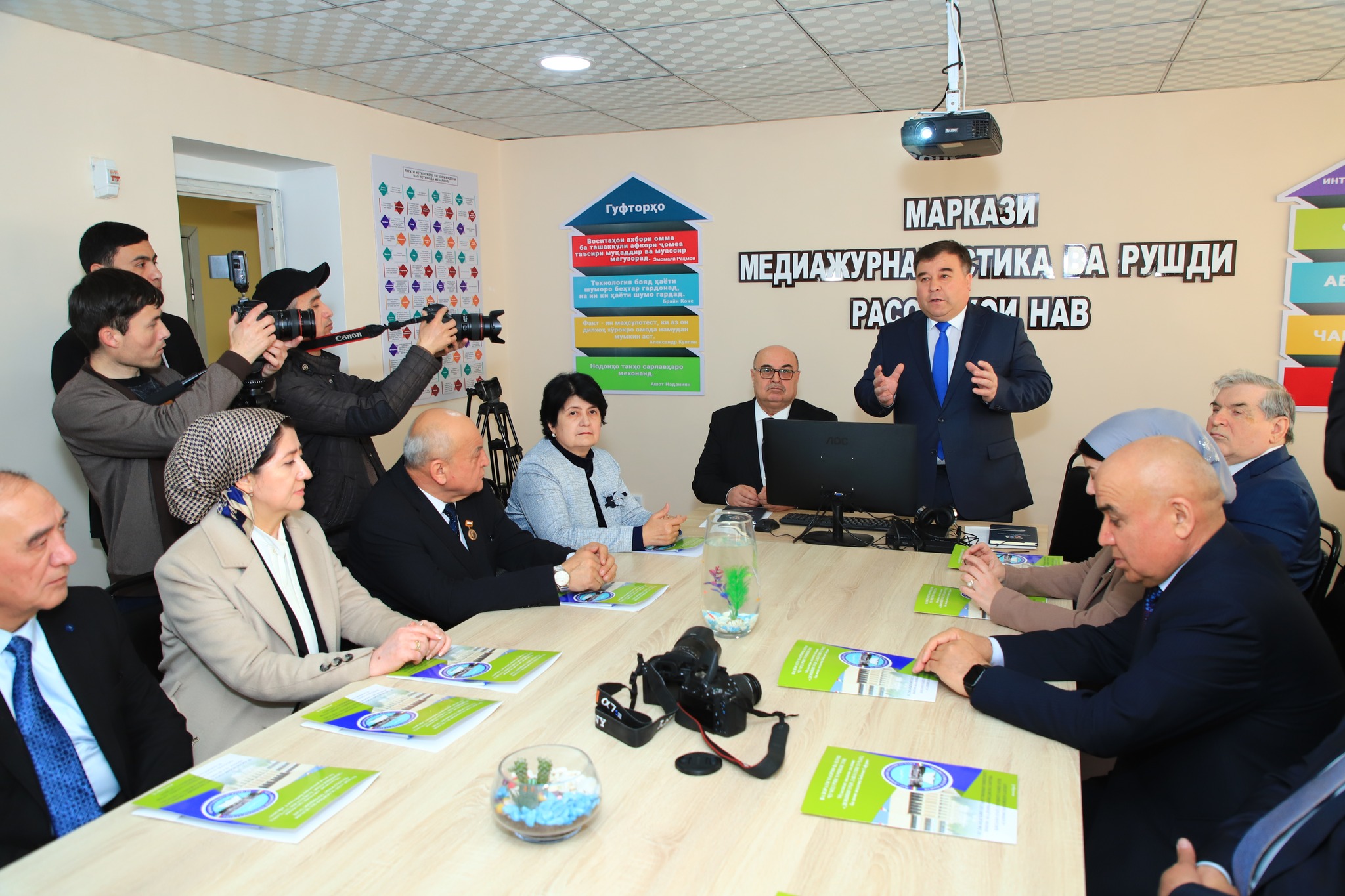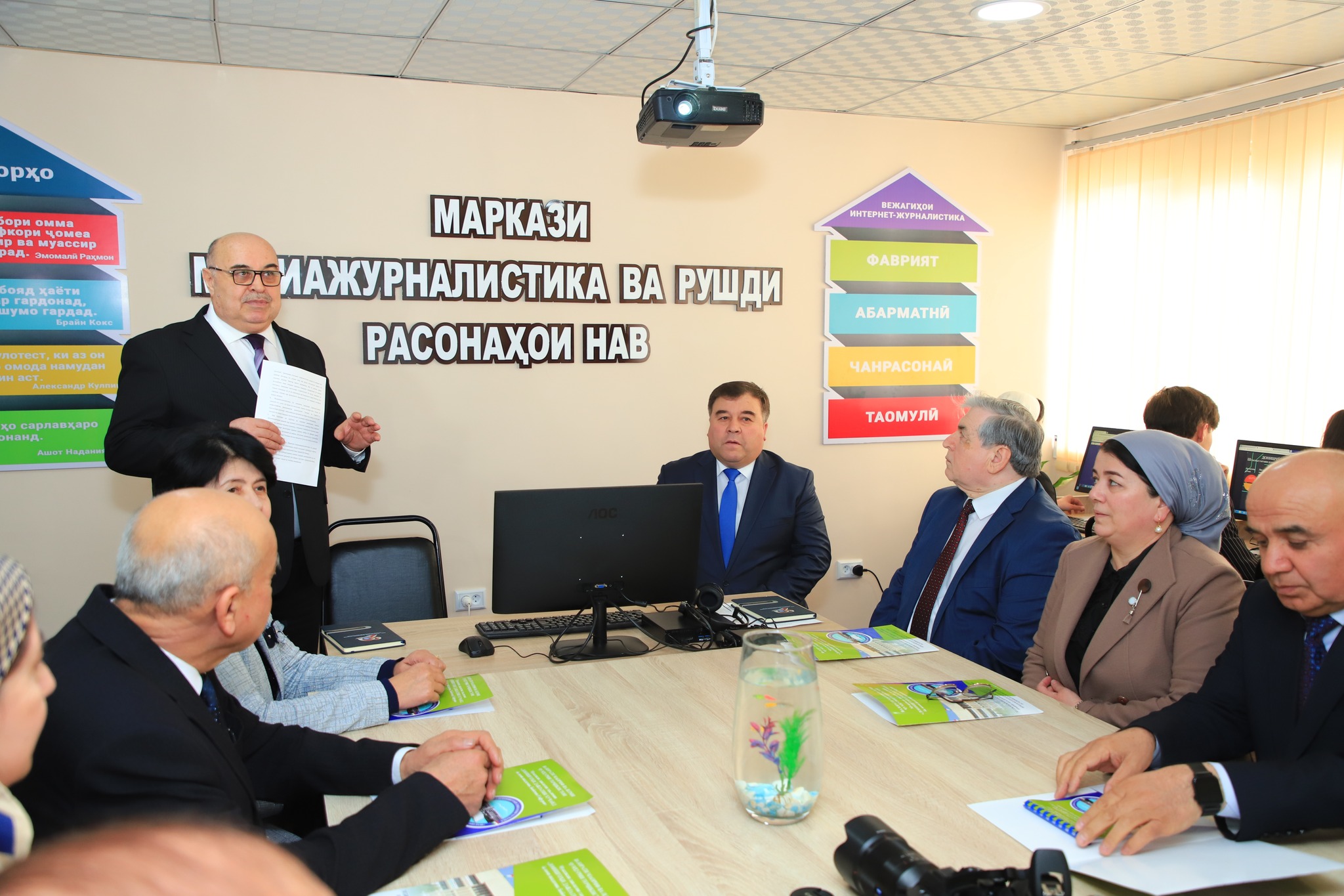 В своей вступительной речи ректор вуза Аюб Усмонзода отметил, что новый центр открылся в рамках поручений и указаний главы государства Эмомали Рахмона по воспитанию и подготовке кадров в медиажурналистике с учетом развития новых медиа.