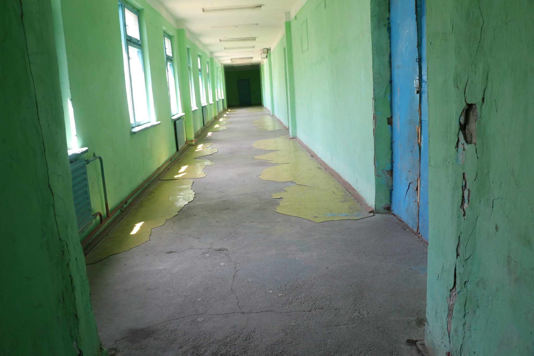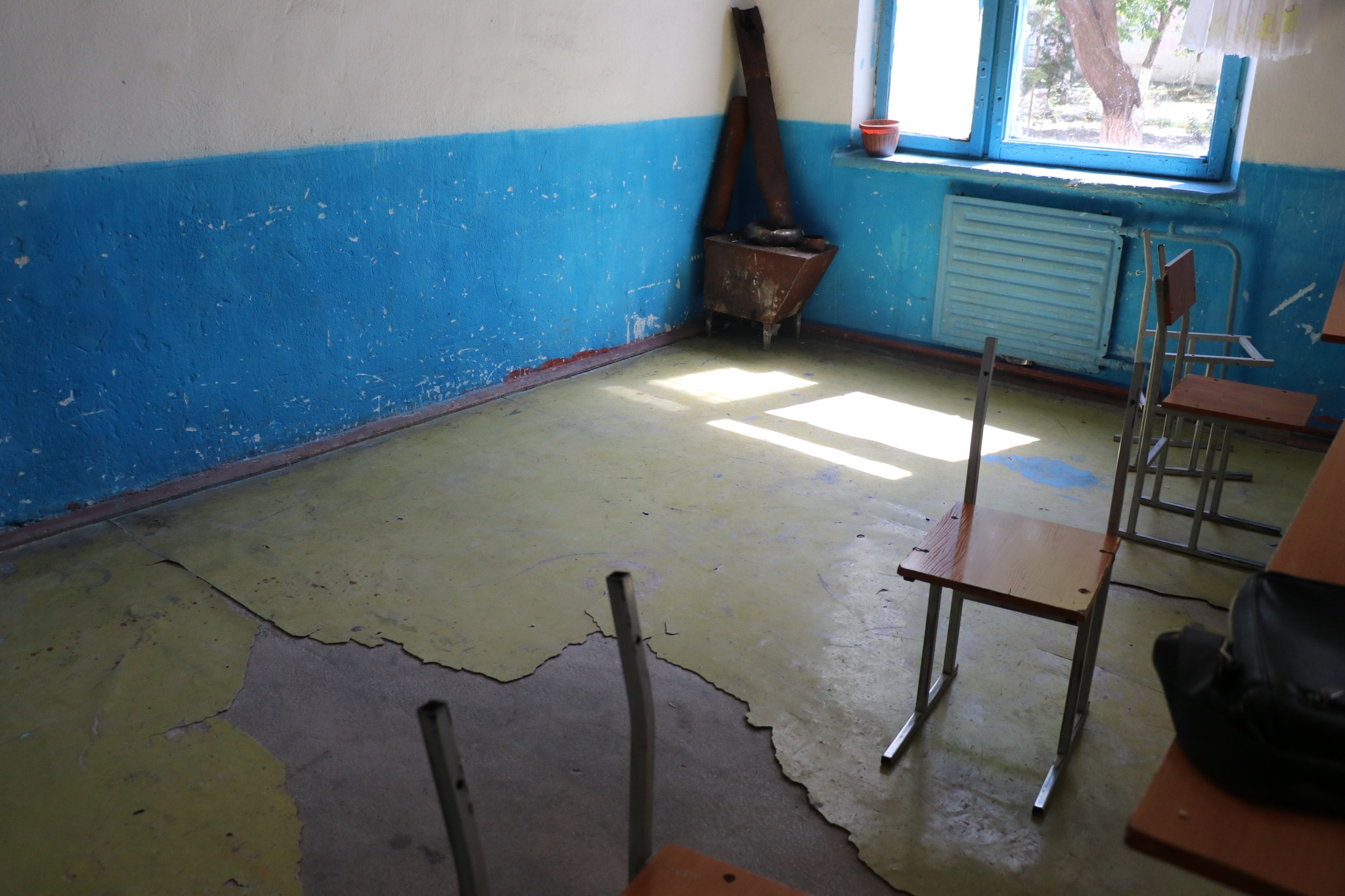 «Здание школы не ремонтировалась в последние несколько лет и не подключено к системе подачи воды. Столы и стулья, двери и окна кабинетов разбиты и не отвечают требованиям», — предает пресс-служба министерства образования.