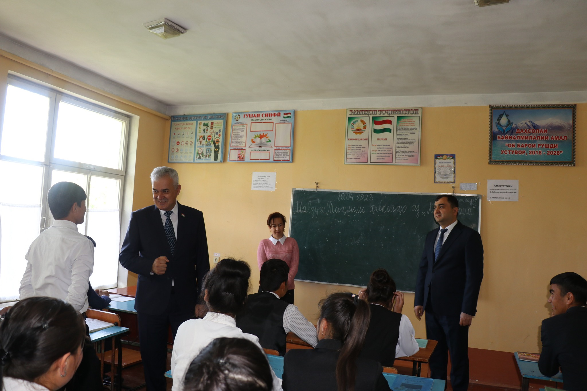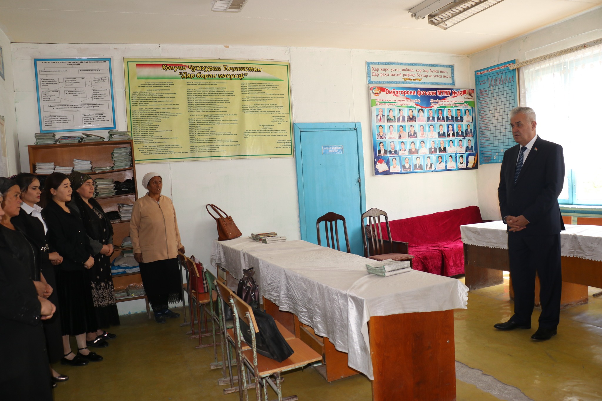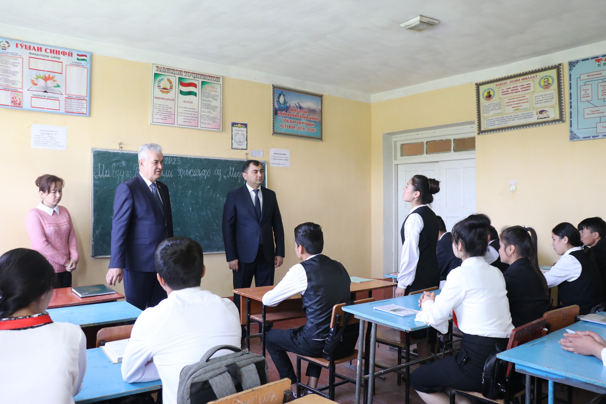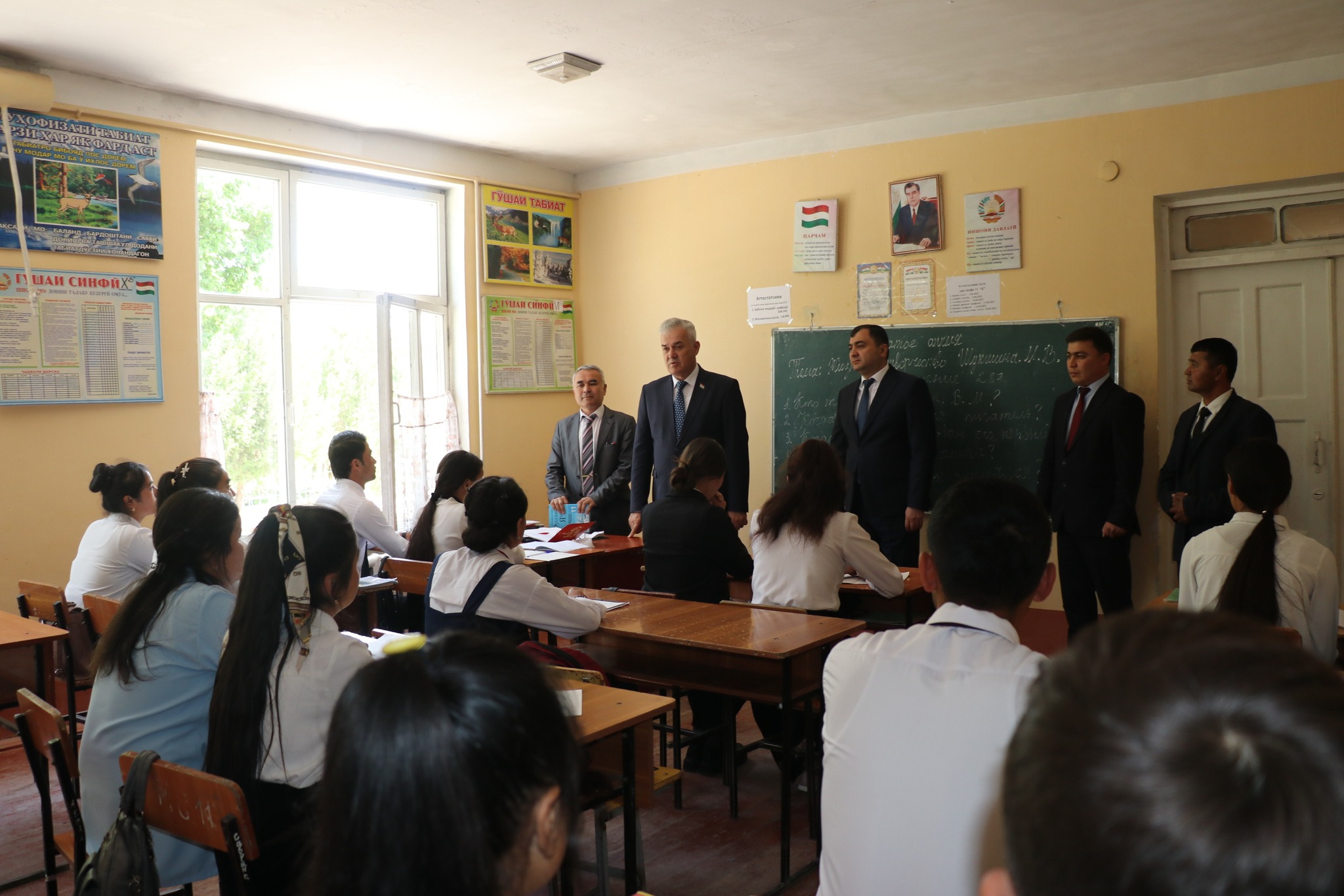Во время беседы с учащимися и педагогическим коллективом школы министр образования поручил в кратчайшие сроки исправить и устранить все недостатки, усилить контроль над изучением 400 употребляемых слов на таджикском, русском и английском языках, изучать ситуацию с подготовкой к сдаче выпускных государственных экзаменов.