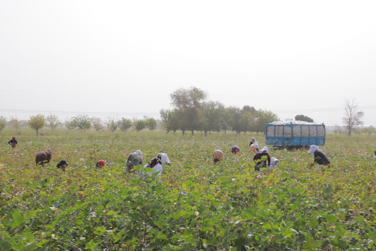 В начале рабочей поездки председатель ознакомился с деятельностью производственного кооператива «Нуртемур». Руководство сообщило, что в текущем году в этом кооперативе было посеяно 50 гектаров хлопчатника. Ежедневно более 100 рабочих заняты сбором хлопка.