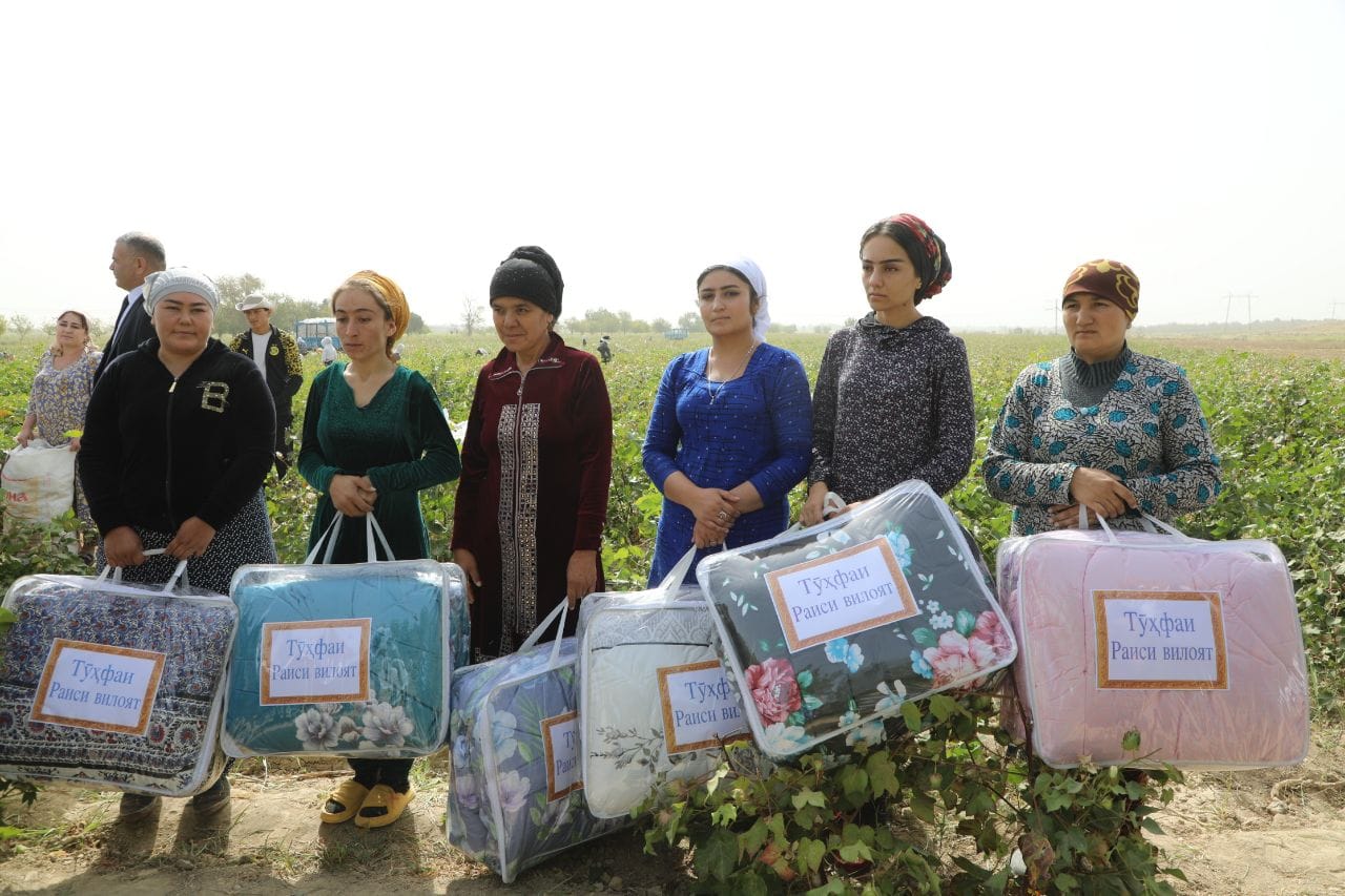 В настоящее время в этих хозяйствах Зафарабада продолжается сбор хлопка-сырца. 12 сентября к сборщикам хлопка присоединился и председатель области Раджаббой Ахмадзода. Он приехал в район для ознакомления с ходом хлопкоуборочной кампании. Об этом сообщили в пресс-службе областной администрации.