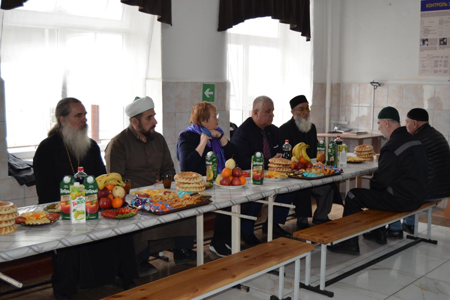 13 апреля состоялась встреча с осуждёнными ИК-10 (г. Екатеринбург) сопредседателя Координационного диаспорального совета при Генеральном консульстве Республики Таджикистан в городе Екатеринбурге Якубжана Умарова, Уполномоченного по правам человека в Свердловской области Татьяны Мерзляковой, помощника начальника ГУФСИН России по Свердловской области по организации работы с верующими протоиерея Алексея Елисеева, первого заместителя муфтия Духовного управления(Центрального муфтията) мусульман Свердловской области Ибрагима Якубова, священнослужителей Центрального муфтията мусульман Свердловской области Российской Федерации Ходжи Умара Асланова и Мухаммада Хашиева.