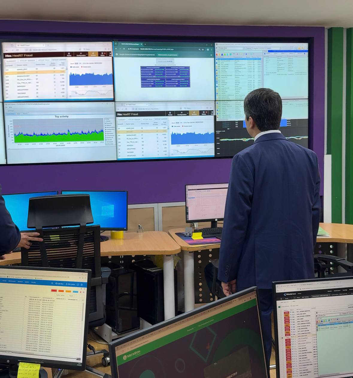 В ходе своего визита Глава Службы связи познакомился с коллективом компании и изучил способы, благодаря которым клиентский сервис позволяет оператору круглосуточно оставаться на связи с абонентами, а также осмотрел оборудование отдела оперативно-технического управления, контролирующего работу сети.