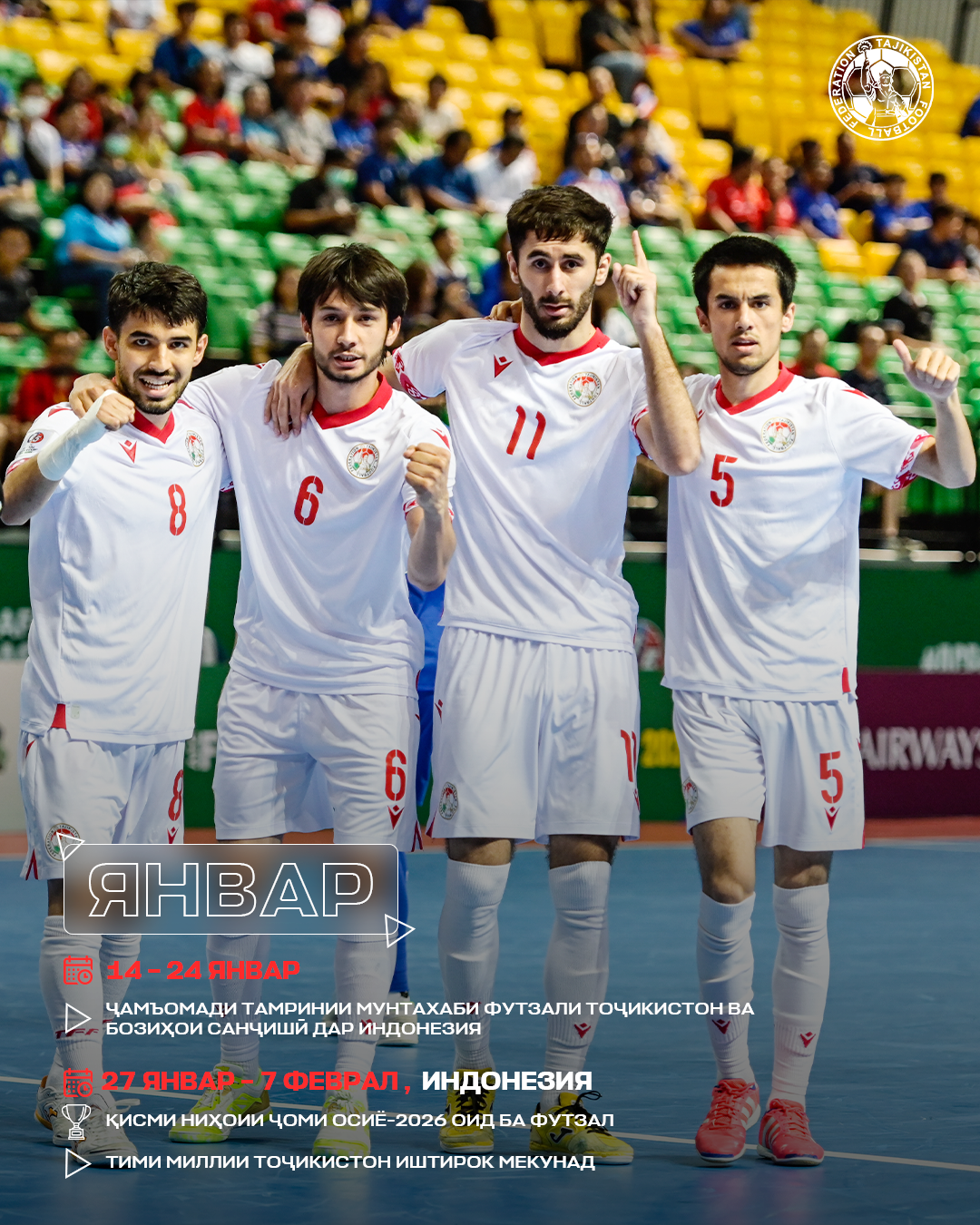 Как сообщает Федерация футбола Таджикистана, в финальных стадиях Кубка Азии-2026 выступят футзальная сборная страны, а также юношеская команда Таджикистана до 17 лет (U-17), которые поборются за высокие результаты на континентальной арене.