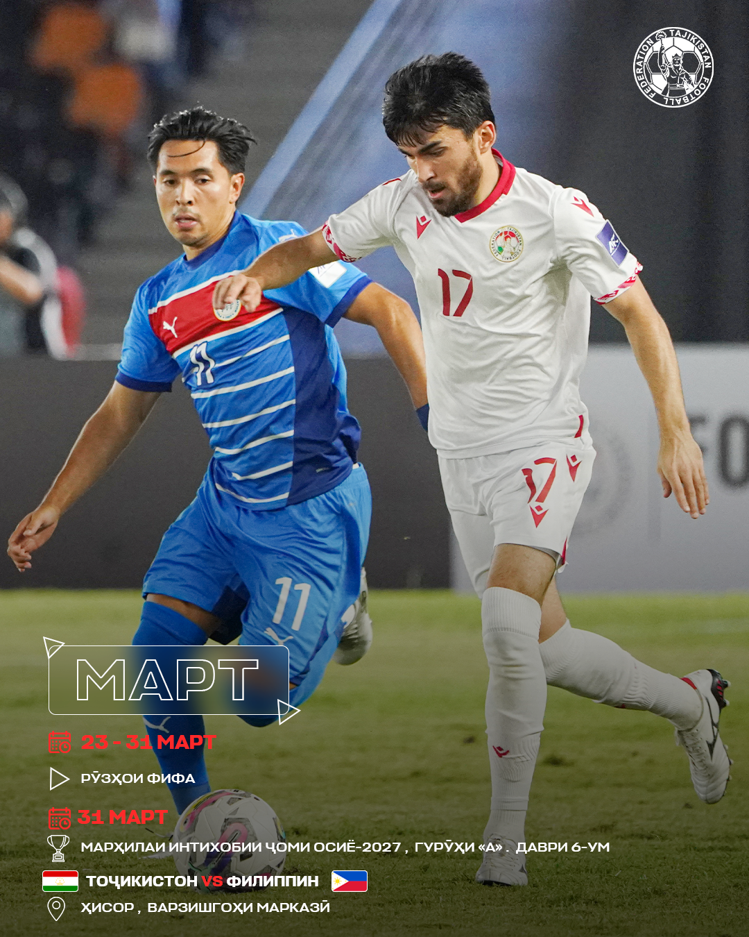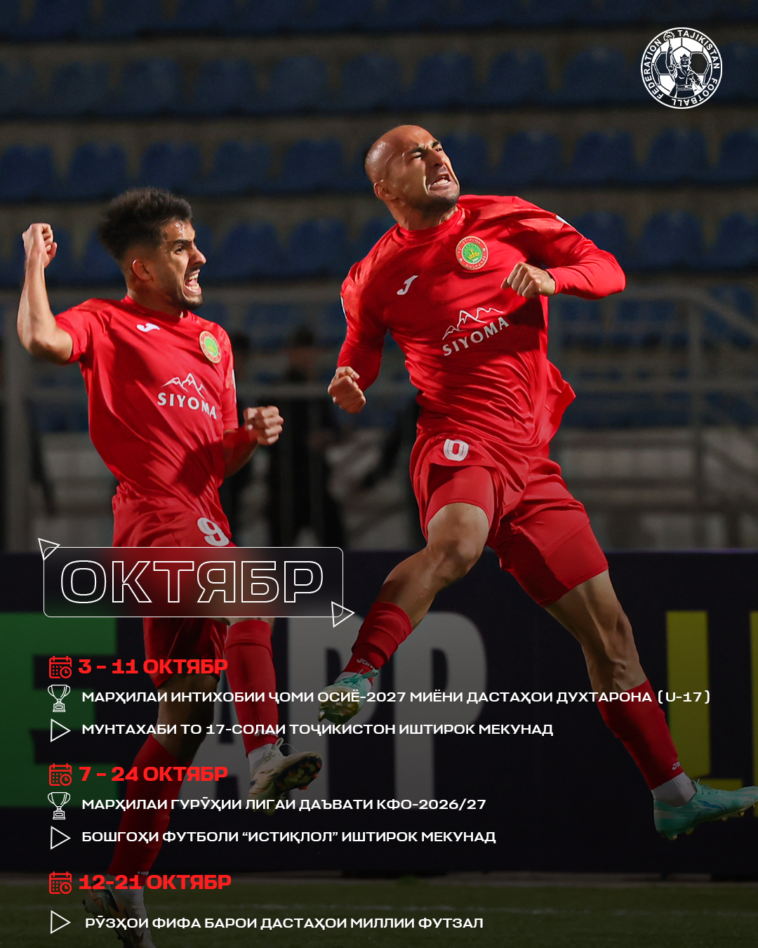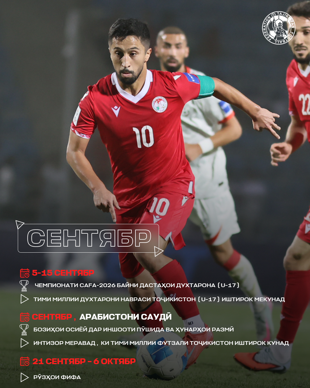 Особое внимание в сезоне будет приковано к национальной сборной Таджикистана. 31 марта команда проведёт решающий матч против сборной Филиппин в рамках отборочного турнира Кубка Азии-2027. По итогам встречи определится обладатель путёвки в финальную часть престижного турнира.