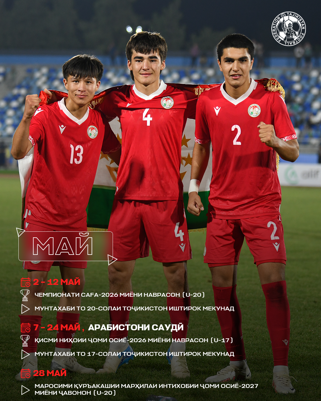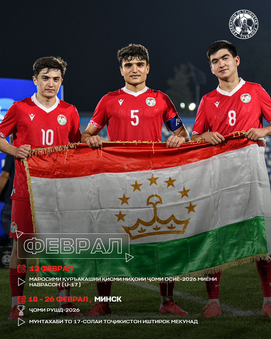 Ниже представлена информация о международных турнирах, в которых в сезоне-2026 примут участие сборные команды Таджикистана и отечественные футбольные клубы.