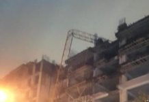 В Душанбе на стройке жилого дома сломался пополам башенный кран(фото,видео)
